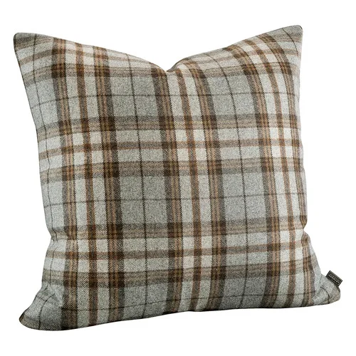 Grå og brun pyntepute i ull fra Artwood.