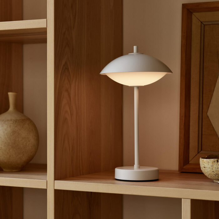 Clam™ lampen er inspirert av fasongen på muslinger og gir et behagelig lys. Lampen er oppladbar og har 3 trinns dimming. Kan brukes ute og inne.