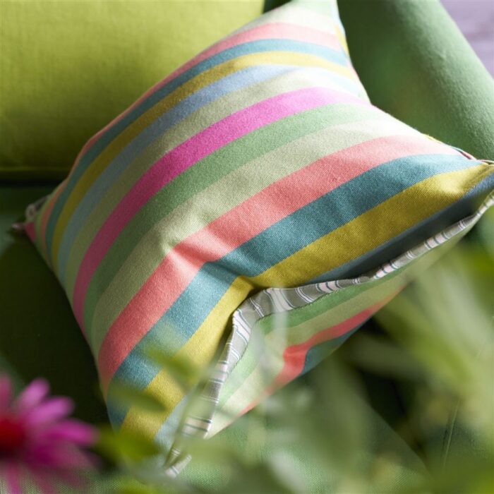 Cork Street Stripe pyntepute fra Designers Guild. En sjarmerende, flerfargede bomullspute med striper og putevarkant på to sider.