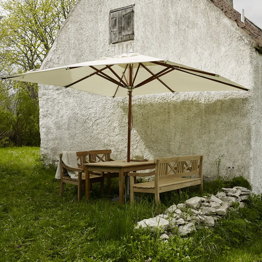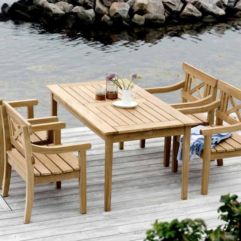 Drachmann serien ble tegnet av Bernt Santesson i 1982, og er inspirert av den nydelige hagen til den danske poeten og maleren Holger Drachmann. Dette bordet er laget av Mogens Holmriis i samarbeid med Skagerak.