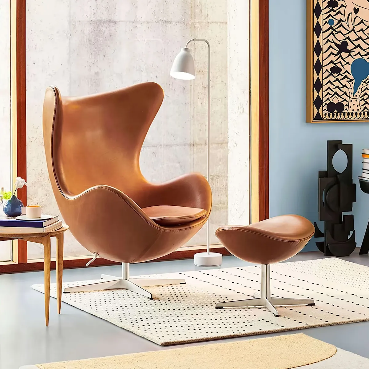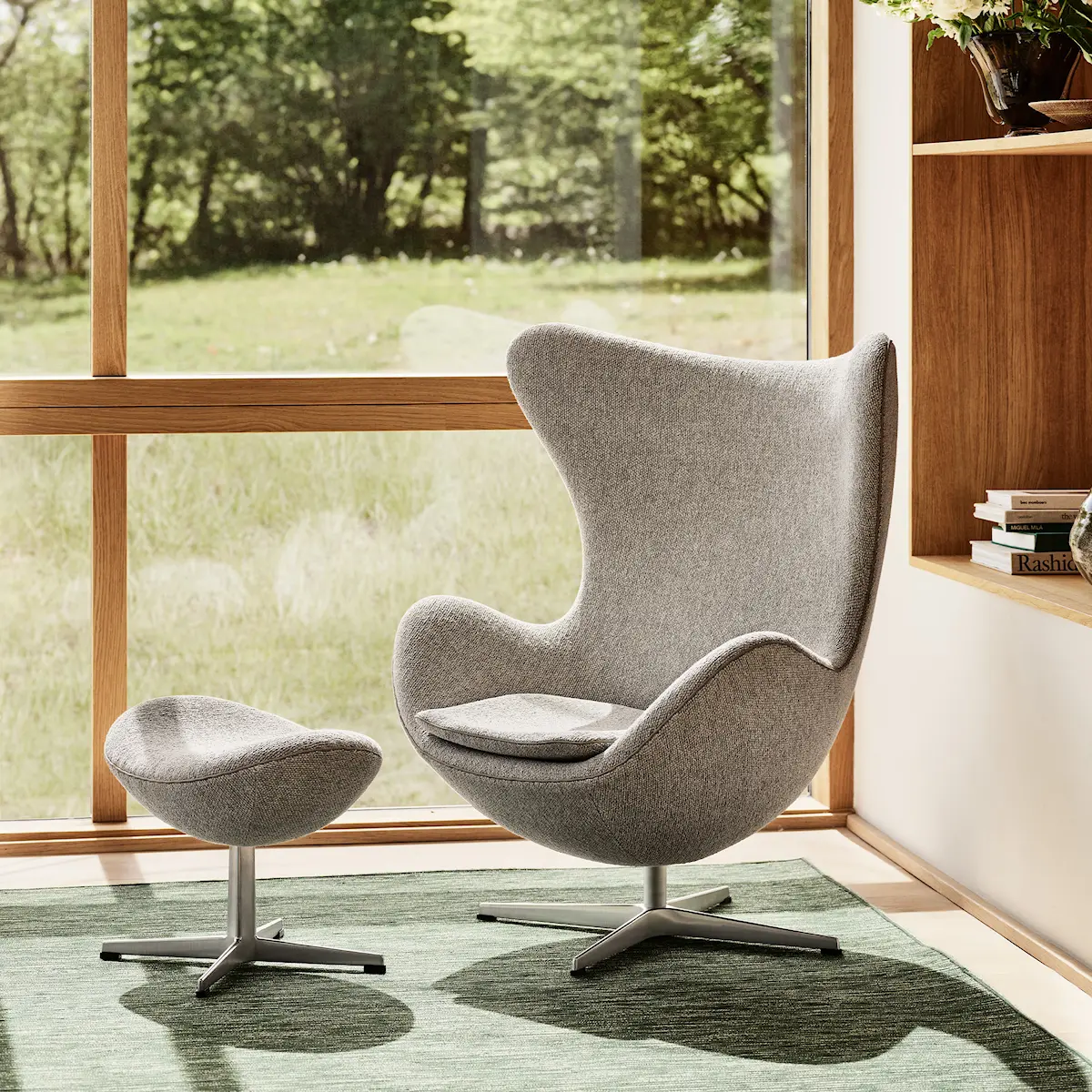 Egget ble designet av Arne Jacobsen i forbindelse med hans arbeid på SAS Royal Hotel i København i 1958. Stolen var banebrytende for sin tid og ble produsert gjennom en teknisk avansert metode som Jacobsen var den første til å bruke.
