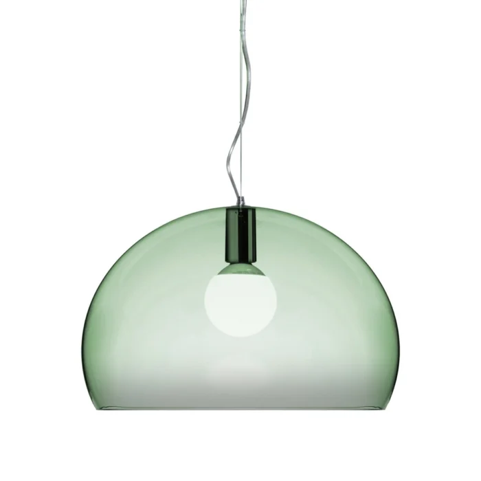 Stilren og leken taklampe designet av Ferruccio Laviani for Kartell. Inspirasjonen er hentet fra skimmeret i såpebobler.