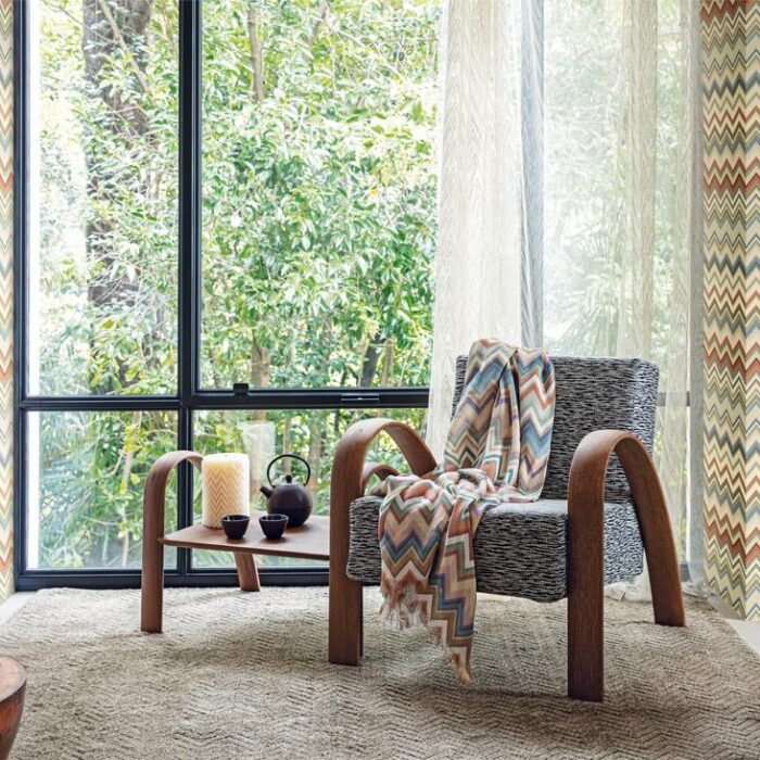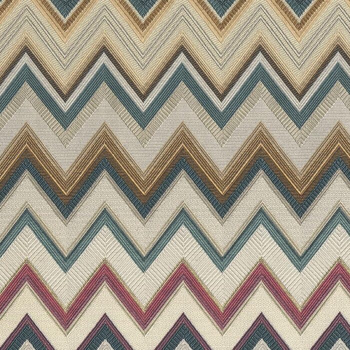 Nydelig vinyltapet fra Missoni Home med deres klassiske Zig Zag mønster. Overflaten gir inntrykk av at tapeten er vevd og gir en lun og god følelse i rommet. Kan vaskes. 1 rull er 10,05cm lang og 100cm bred. Rapport på 60.