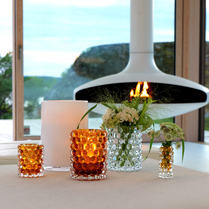 Hurricane Boule, den klassiske lyslykten fra Skogsberg & Smart. Siden lanseringen i 2008 har Hurricane blitt veldig populær blant dekoratører over hele verden. De spennende lysglassene med bobler ser ut til å løfte ethvert rom. Denne krystalldesignen reflekterer lyset på en utsøkt måte. De vakre lyktene er laget for hånd av dyktige glassmestere i Böhmen, Tsjekkia.