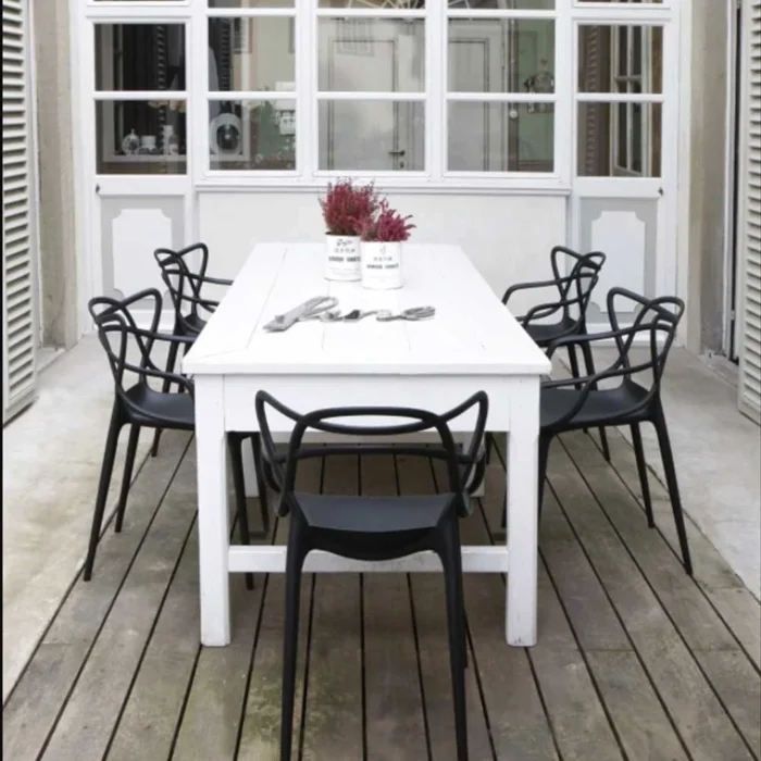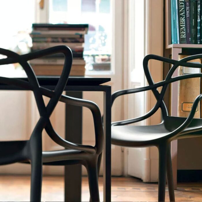 Stolen Masters er Philippe Starcks hyllest til tre designikoner; “Syver” av Arne Jacobsen, “The Tulip” av Eero Saarinen og “The Eiffel Chair” av Charles Eames. Tre klassikere i en og samme stol. Konturene fra disse tre stolene finnes i Masters bølgende linjer. Masters er en romslig og komfortabel stol som også kan stables. Stolen er laget av polypropylen, noe som betyr at den kan brukes både innendørs, ute i hagen eller på balkongen. Masters er enkle å kombinere og passer perfekt sammen med mange forskjellige typer bord. Den vakre formen er et kunstverk i seg selv. Stolen blir en iøynefallende detalj i hjemmet ditt.