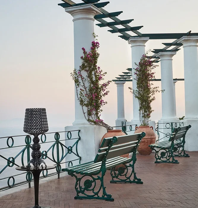 Kabuki serien ble designet av Ferruccio Laviani for Kartell i 2017. Lampene ser ut som gamle kniplingsbroderier og løfter ethvert rom. Kommer som gulvlampe for innendørs og utendørs bruk, samt en bordlampe og en pendel.