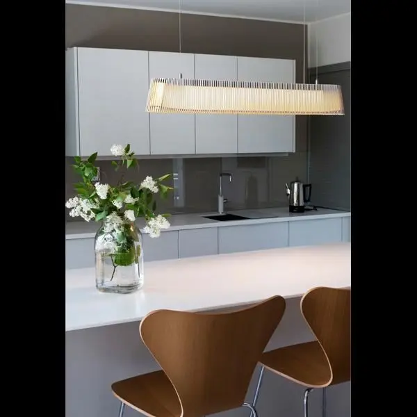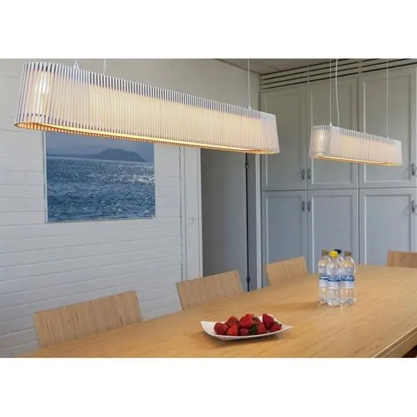 En horisontal pendel som lyser opp både møterom og spiserom. Kommer med det siste innen LED-teknologi.
