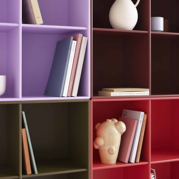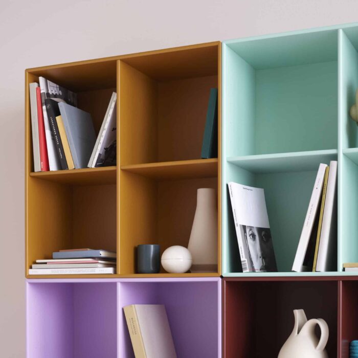 1112 (SHOW) er åpen bokhylle som er perfekt som en bokhylle til stuen, en oppbevaringsboks for gangen eller barnerommet eller som kjøkkenhyller for å vise kjøkkenutstyr og kokebøker. Den åpne bokhyllen er en Montana-klassiker og en ikonisk lagringsløsning som viser din personlighet i hjemmet ditt med sine fire åpne rom.