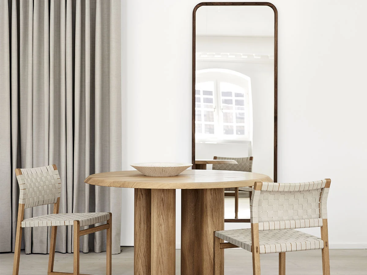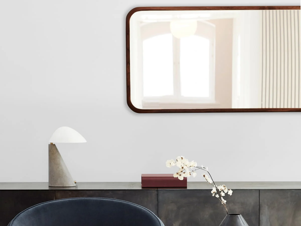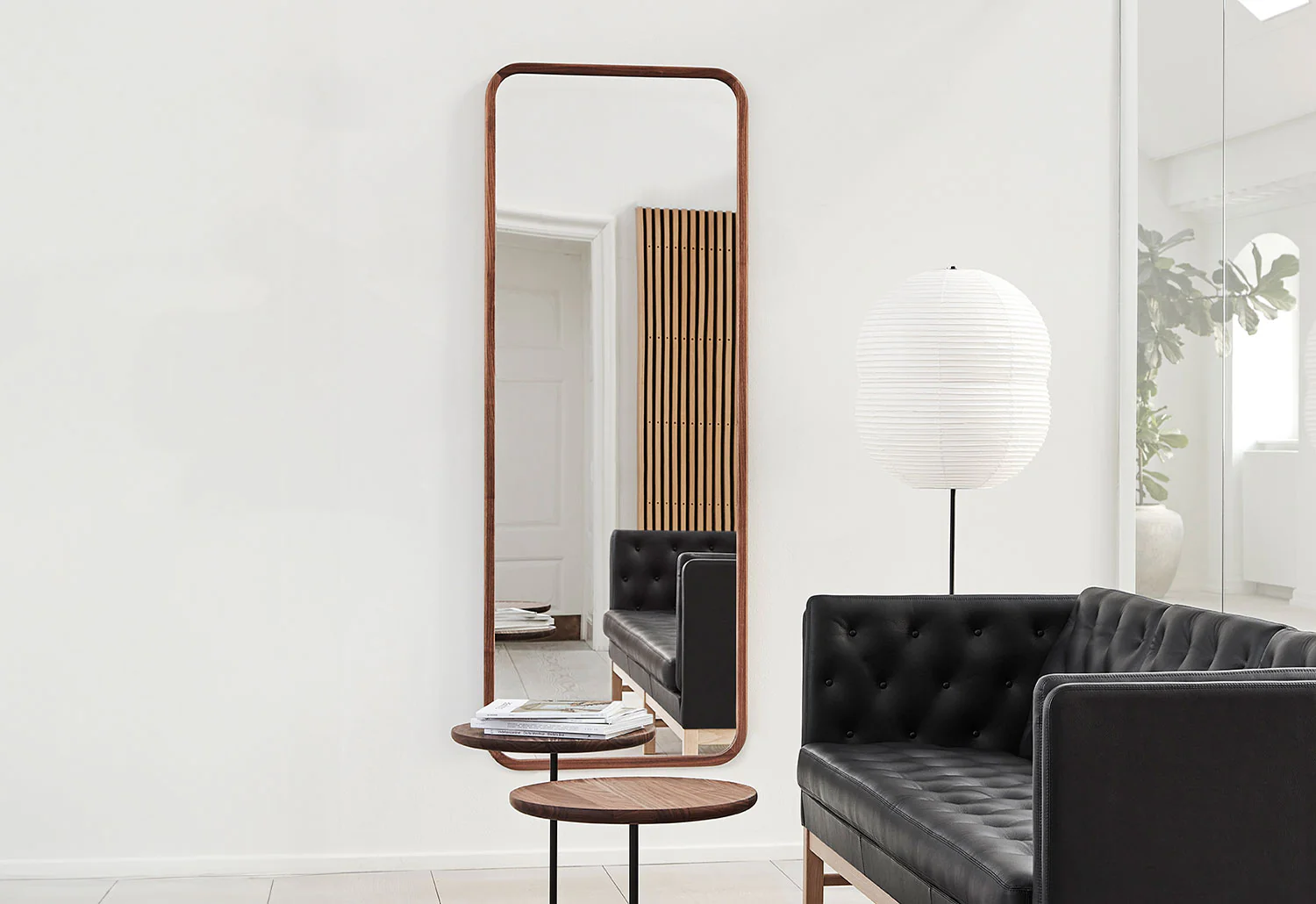 Nydelig klassisk speil designet av OEO Studio. Rammen er massivt tre i oljet eik eller valnøtt.