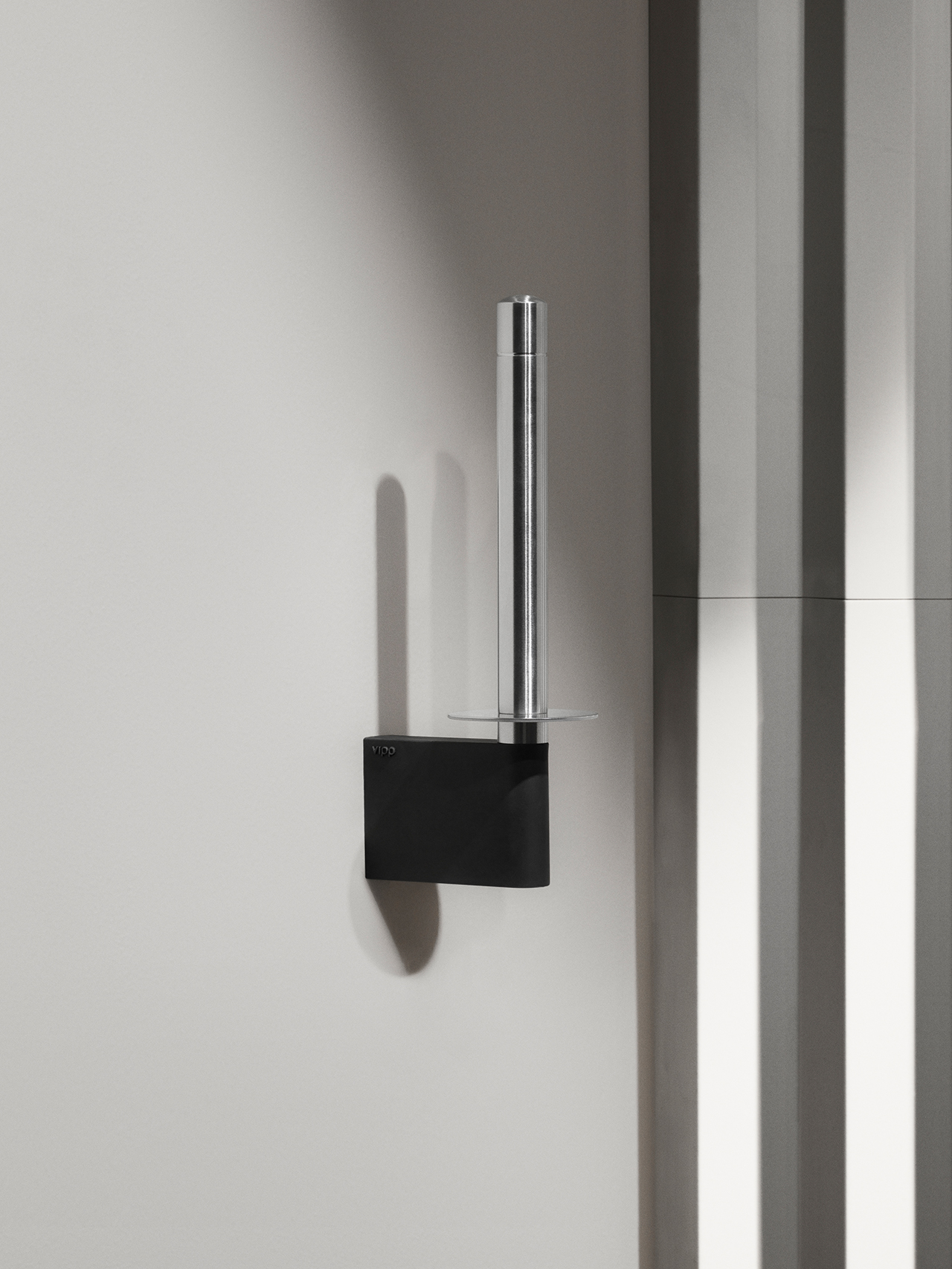 Vipp reserverullholder er en nyttig løsning for å oppbevare ekstra toalettruller på badet. Sammen med Vipps toalettrullholder kompletterer reserverullholderen et funksjonelt produktpar for baderommet.