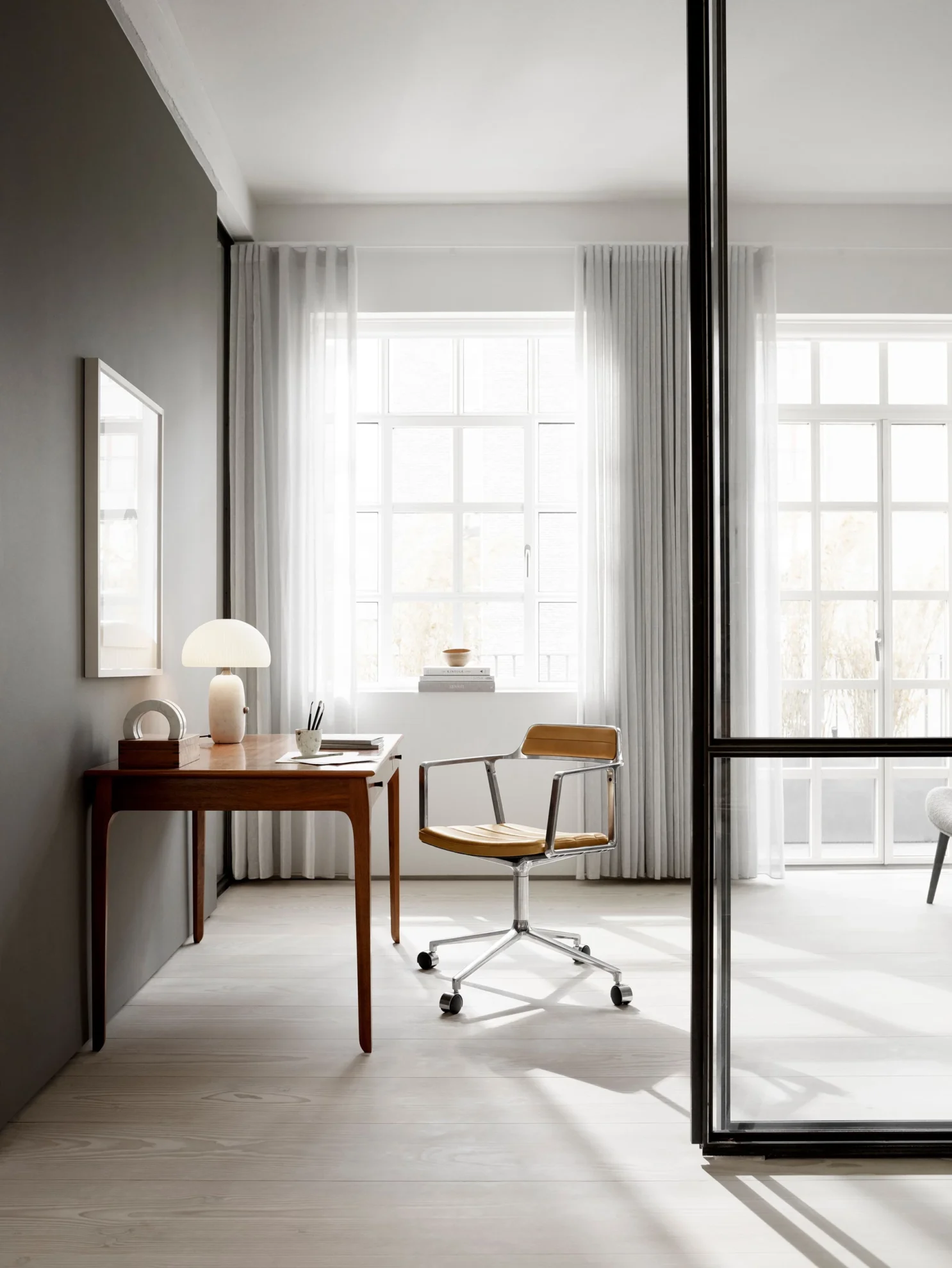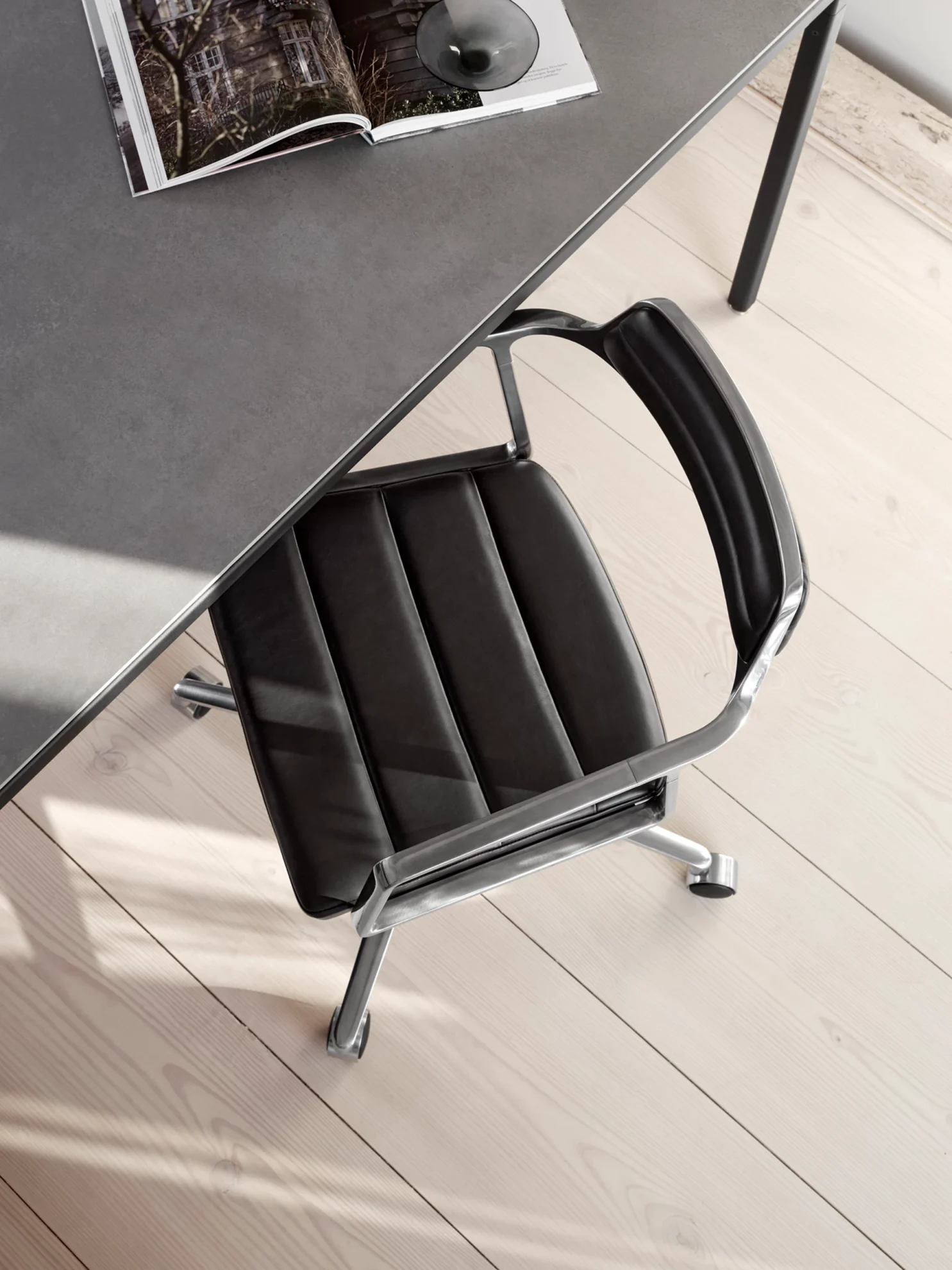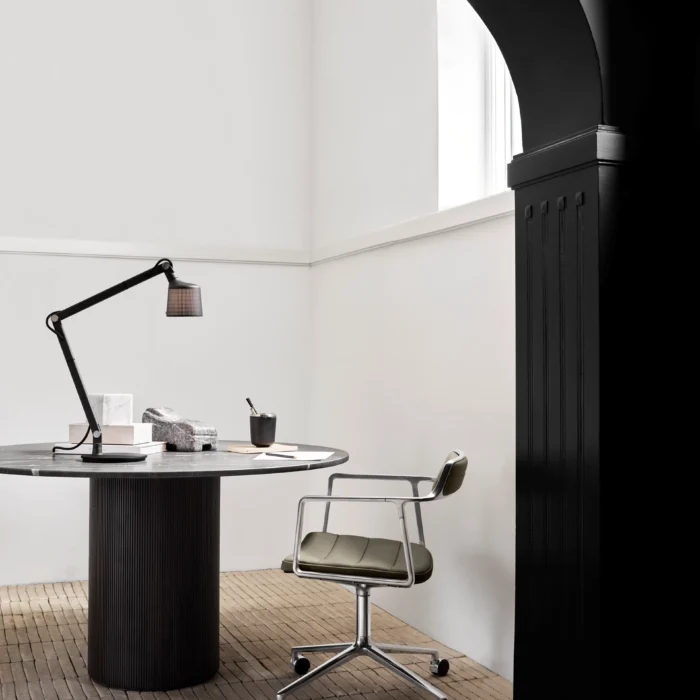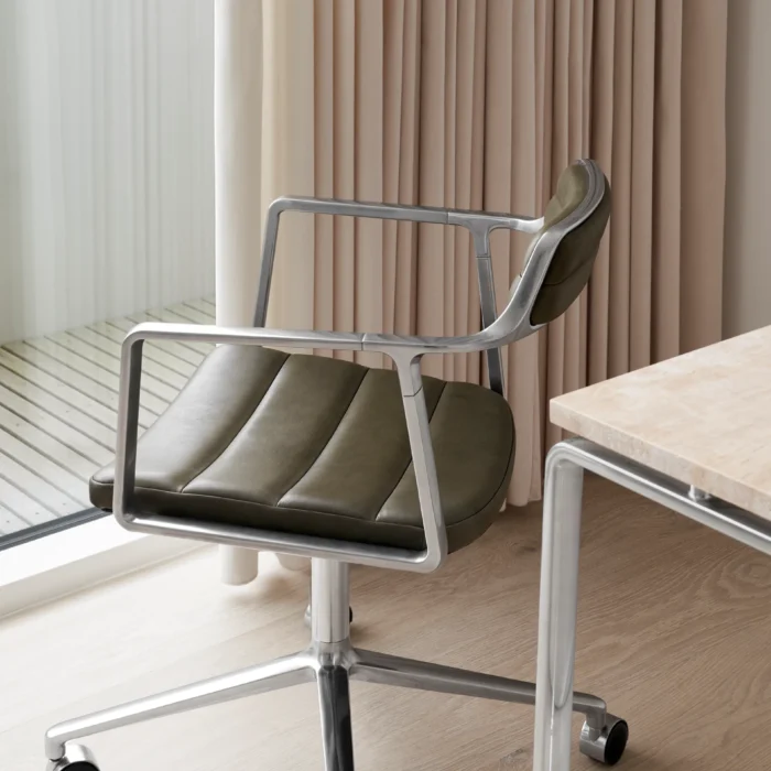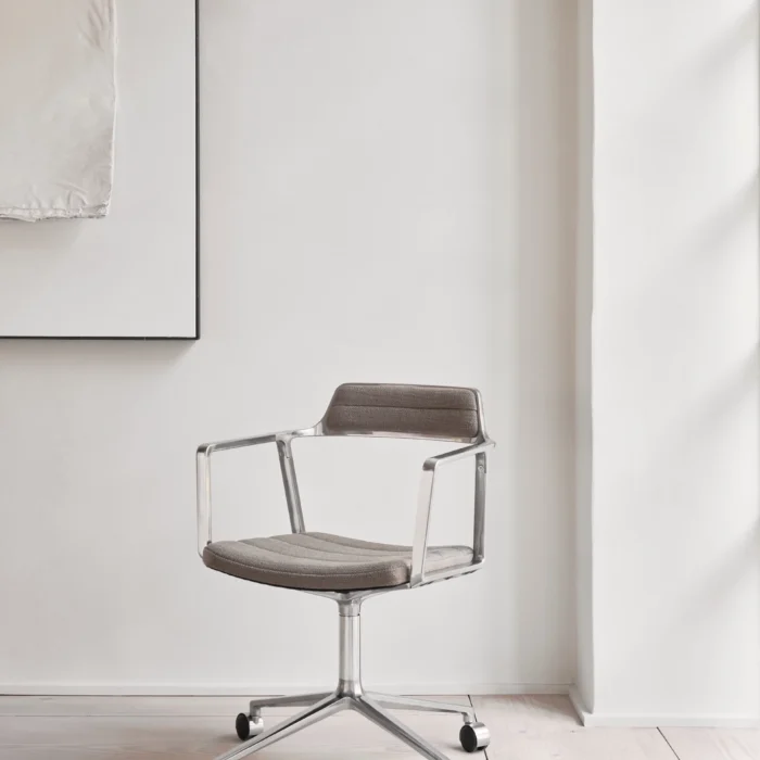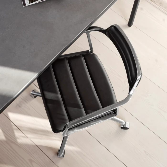 452 svingstol med hjul fra VIPP med et klassisk design som aldri går av moten. Polstring i anilinskinn eller tekstil.