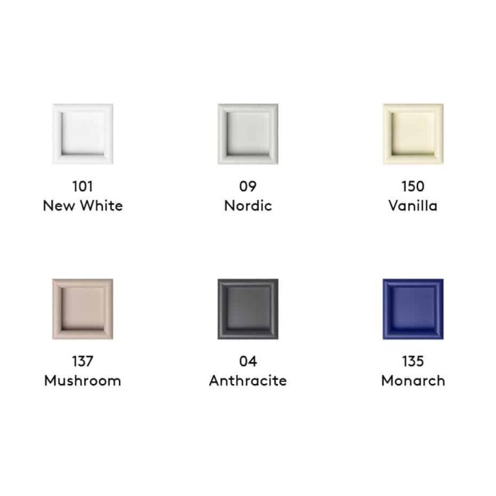 | Farge | 04 Anthracite, 05 Black, 09 Nordic, 101 New White, 135 Monarch, 137 Mushroom, 150 Vanilla, 152 Parsley, 01 White, 02 Fjord, 100 Graphic, 136 Pine, 138 Juniper, 139 Oregano, 140 Pomelo, 141 Truffle, 142 Amber, 144 Fennel, 145 Rosehip, 146 Hazelnut, 147 Shadow, 148 Flint, 151 Rhubarb, 154 Azure, 155 Masala, 156 Oyster, 157 Cumin, 158 Oat, 159 Camomile, 160 Balsamic, 161 Mist, 162 Hokaido, 163 Black Jade, 164 Iris, 165 Beetroot, 166 Acasia, 167 Ruby, 168 Clay, 35 Coffee, 36 Coal, 38 Snow |